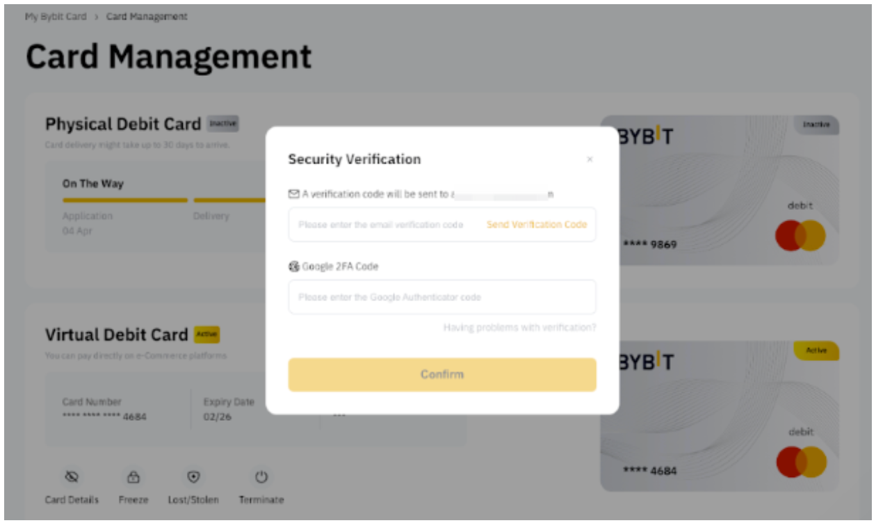 You can now manage both your virtual and physical Bybit Card on the Card Management page.