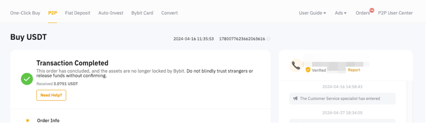 b. If the seller fails to release the coins after 10 minutes, you can submit an appeal by clicking on the Need Help button to get assistance. For more detailed information about appeal guidelines, please refer to this article. Our customer support team will assist you in the Order Chat Box. During this period, please do not cancel the order unless you've received a refund from your seller.