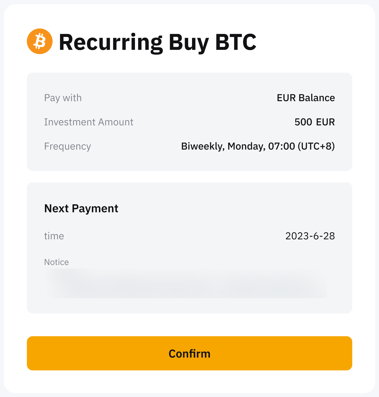 - Dutch users can only use the four (4) pairs: EUR/USDT, EUR/USDC, EUR/ETH and EUR/BTC to purchase Recurring Buy plans.