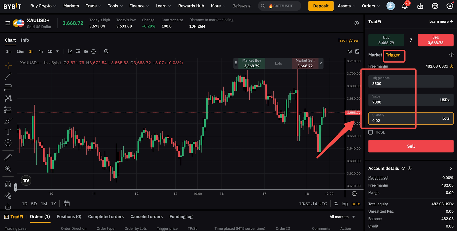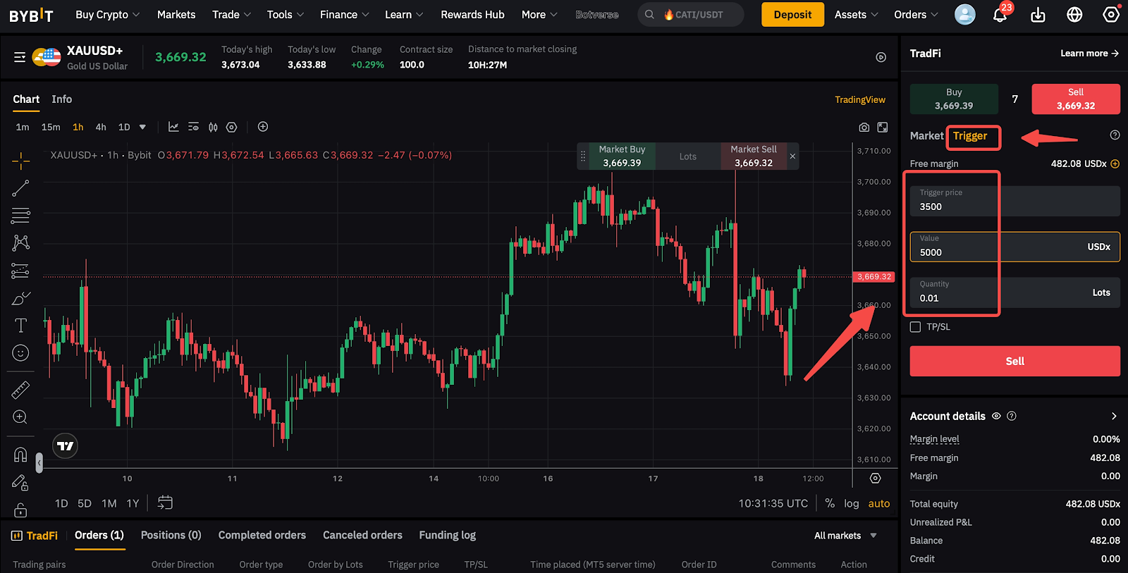 Traders need to input both the Trigger Price and either the Value or the Quantity in order to place the order.