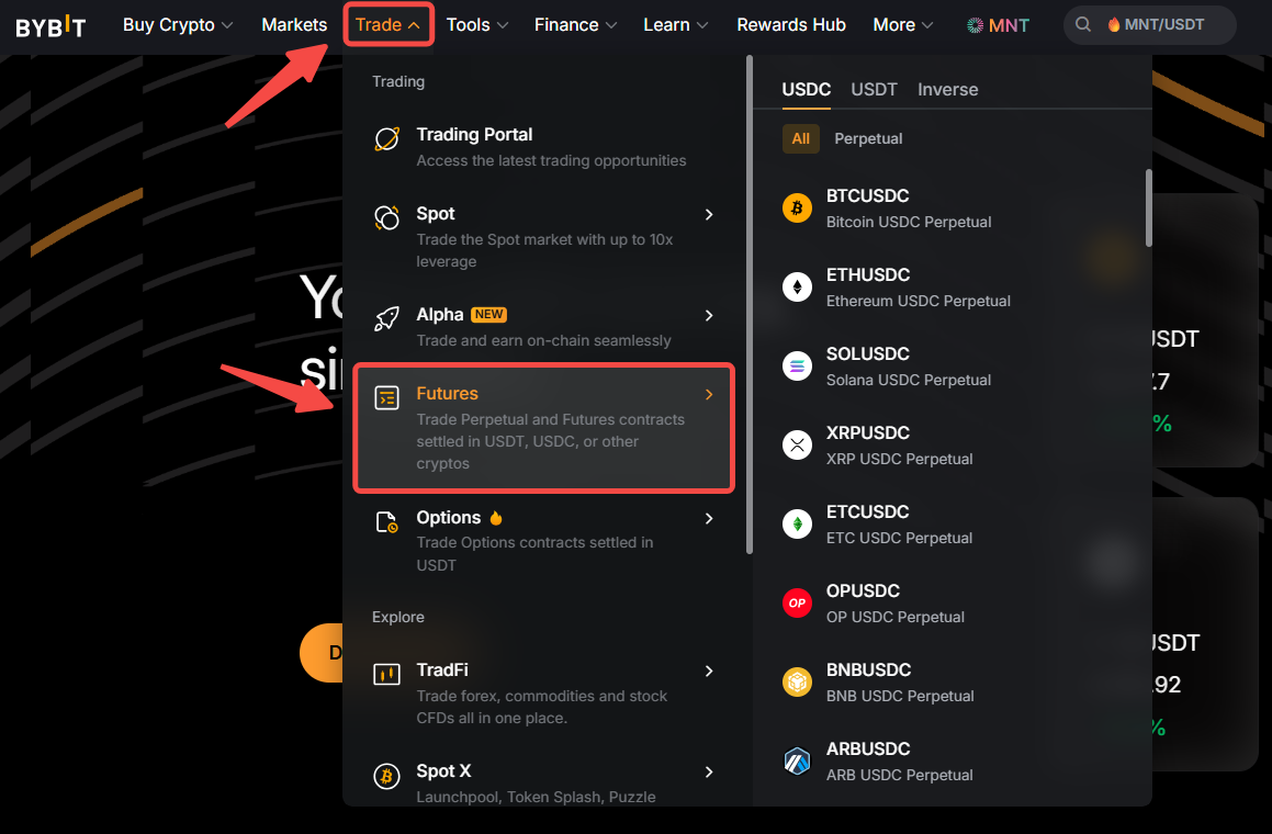 Step 1: Log in to your Bybit account and click Trade → Futures in the top navigation bar.