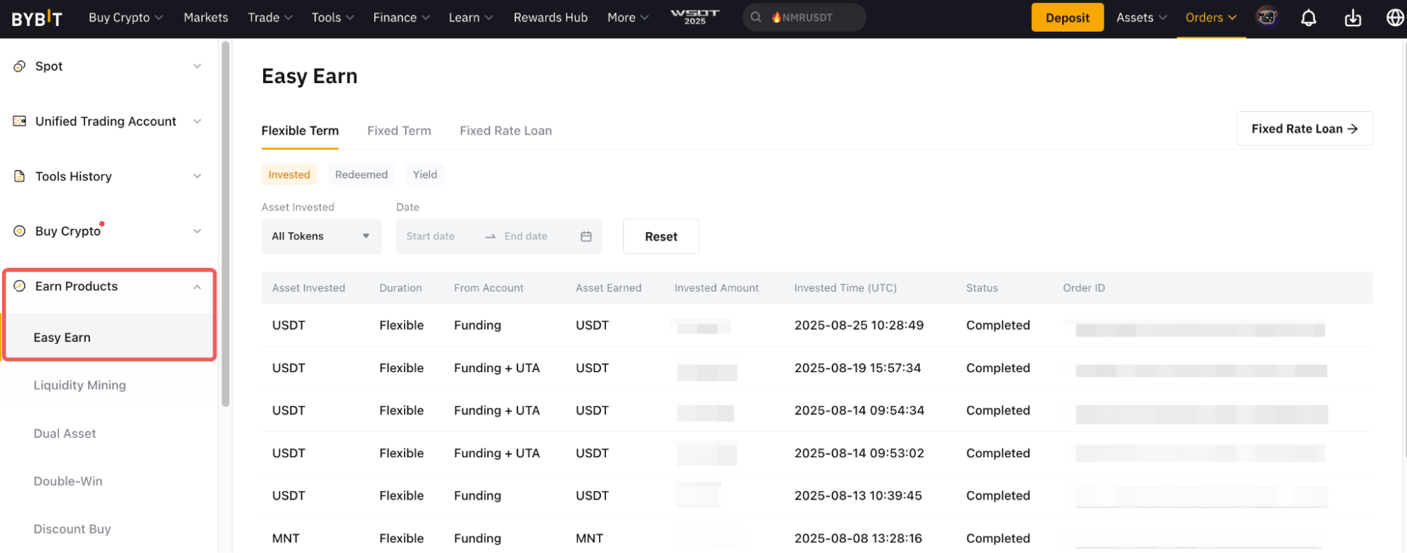 Cómo suscribirse a/gastar con Easy Earn desde su panel de Bybit Pay