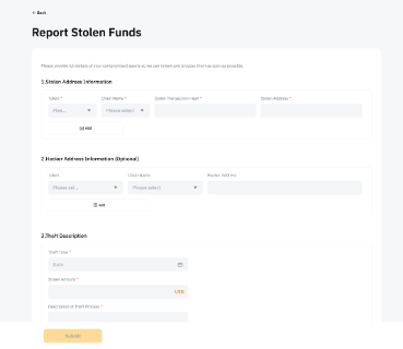 Paso 3 (sólo VIP): proporciona detalles completos sobre los activos robados, incluida la información de los activos robados (tipo y cantidad), la dirección del hacker (si está disponible), una descripción clara de cómo ocurrió el robo y su información de contacto actualizada.