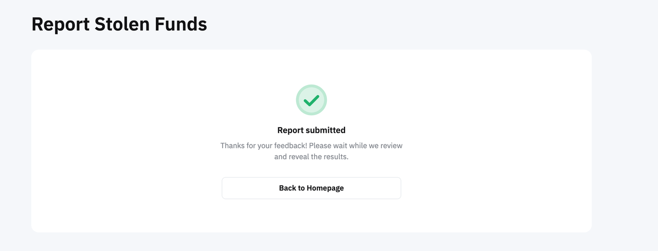 Paso 2: Confirma los detalles en la página Informar sobre fondos robados.