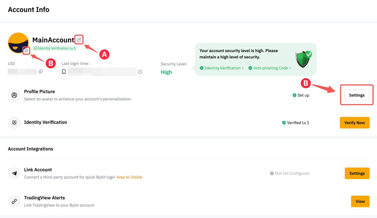 Puede encontrar una guía paso a paso a continuación para actualizar su apodo, foto de perfil, visualización de moneda e idioma de notificación en su cuenta.