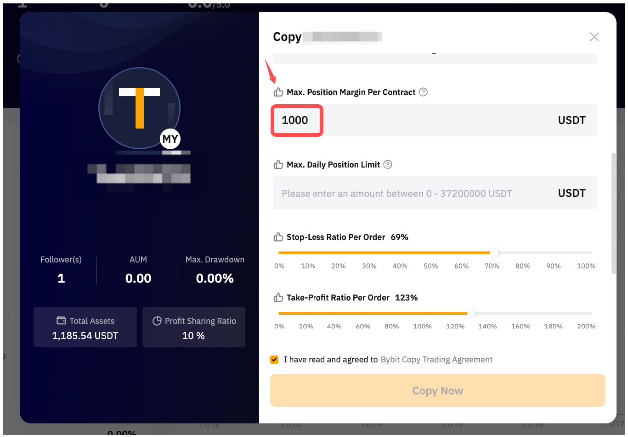 Para ver información completa sobre cada parámetro, consulta Modo de copia y configuración de parámetros (Copy Trading).