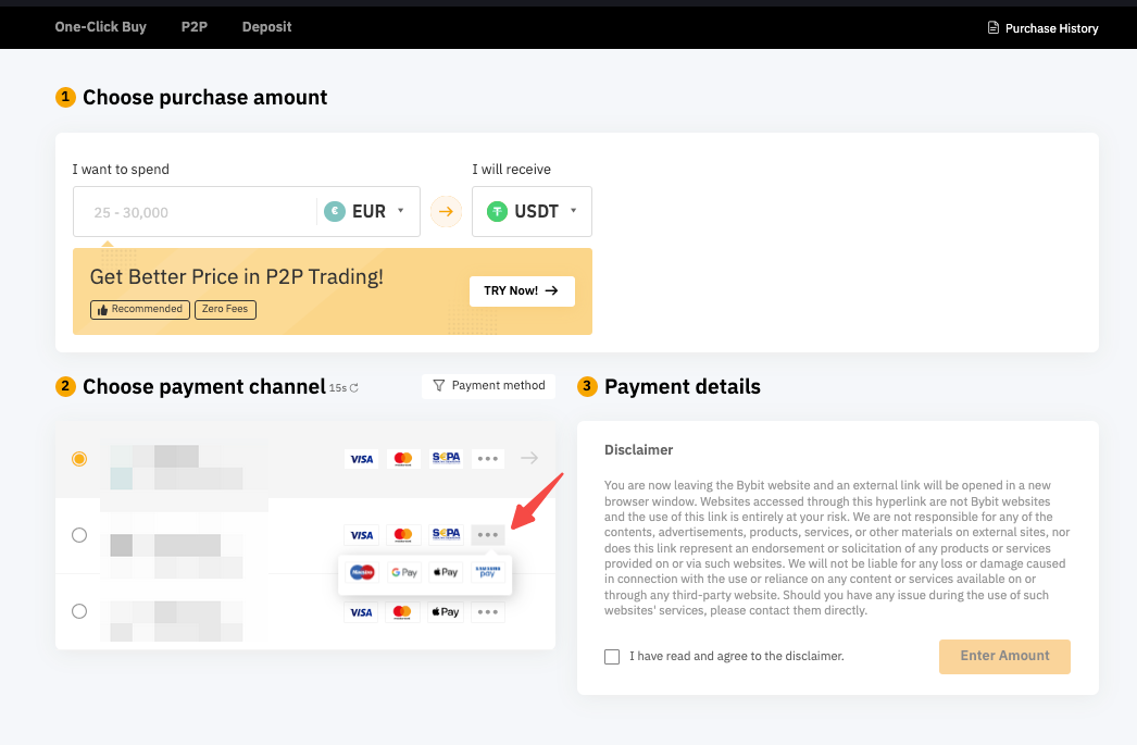 スムーズな暗号通貨ワンクリック購入を実現するために、トレーダーはサードパーティのサービスプロバイダー側にて本人確認を完了する必要があります。本人確認が完了すると、サービスプロバイダは、トレーダーのBybitアカウントに暗号資産を入金するために送金を行います。一般的には、 入金が反映されるまでの時間は、2~3時間以内です。遅延が発生し、24時間経過しても入金されない場合は、選択されたサービスプロバイダから電子メールによる連絡がないかどうか、電子メールの受信箱をご確認ください。また、各サービスプロバイダーのカスタマーサポートへのお問い合わせ方法については、下記のFAQをご参照くださ。