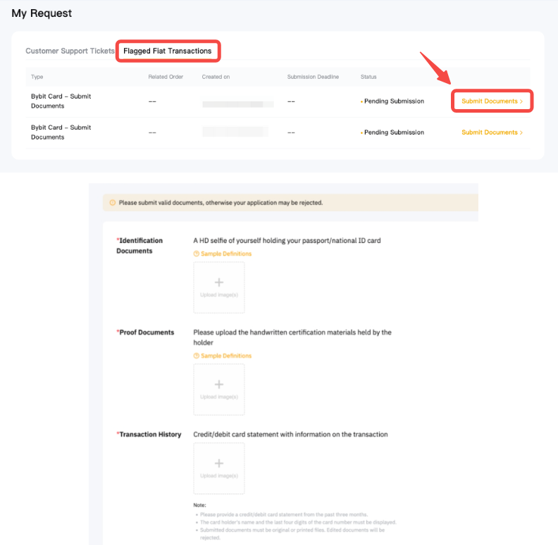Você deverá fornecer os seguintes documentos durante a solicitação do Bybit Card: