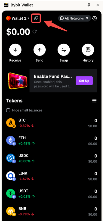 Шаг 2. Нажмите на значок копирования, чтобы скопировать адрес кошелька.