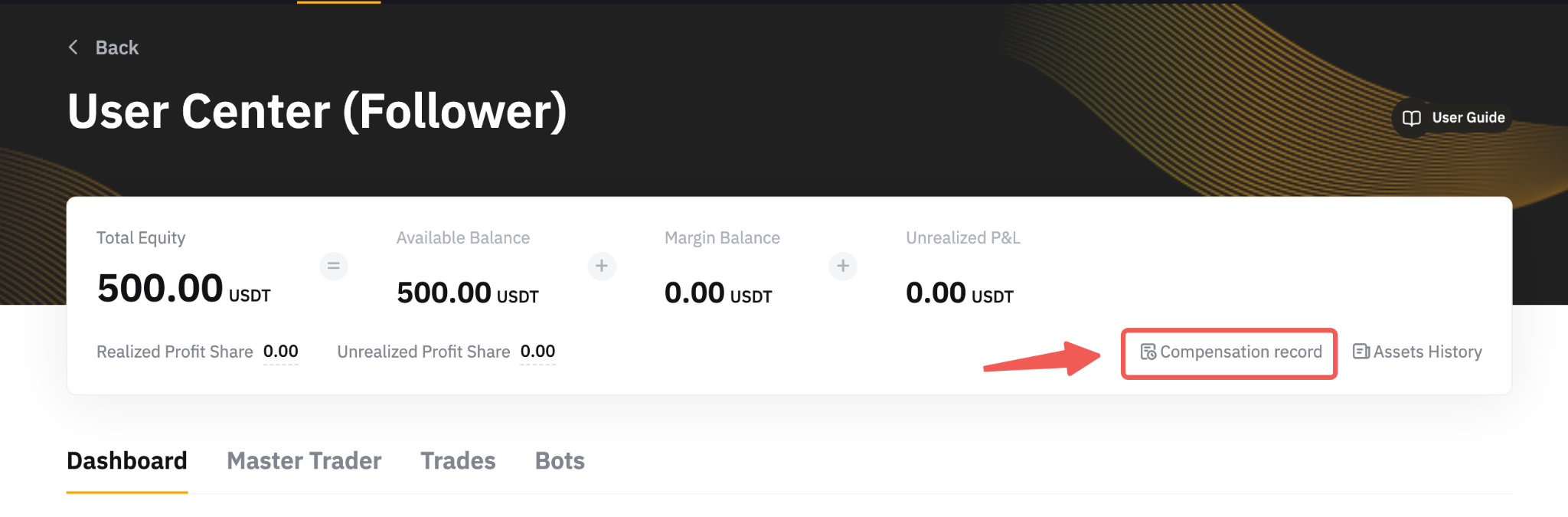 您可以前往用戶中心(跟单者)面板。检查首单和大额保赔卷的补偿状态可在相应记录下找到: