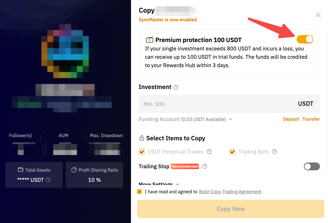 用户必须满足特定条款、标准和投资要求,才能激活保赔,标准可能会因用户是新跟单者还是现有跟单者而有所不同。